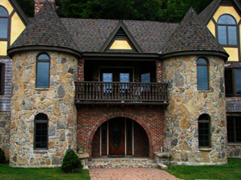 | CLICK HERE TO GO HOME Offered by The Buena Vista Real Estate Company at $3,850,000 million. Private showings with appointment only. For more of the particulars and details on construction, heating and air systems and craftsmanship: telephone Ann Marie at (860) 572-7305 X1 or via email BY CLICKING HERE ![]() Your guests will enter your estate thru sister turrets with stain glass windows. They will look to their final destination, the castle, as it sits atop the crest of the gentle slope surrounded by trees yet taller than its highest point. One cannot discern the age difference between the two; the trees have been their long before and have only recently commenced to keep gentle watch over the castle. As your guests travel beyond the boundaries of your homes stone wall perimeter and enter thru the solid iron gate they will travel up the gently curving drive and past the fruit trees, grape arbors and potting shed to the circular drive whose center hosts a 3 tier water fountain. Whether their journey to your door is guided by streaming sunlight or the shimmer from the lampposts providing area lighting, they will be glad they arrived and take reprieve. ![]() All are welcome and will feel the tranquility because once you arrive, you forget. Forget, that you are just a short distance from Boston or New York and seconds from highways, major transportation and the conveniences of the historic, unique, seafaring town of Mystic, Connecticut. One of this homes many captivating brilliances. ![]() The Castle is a 6,000 plus square foot home built for living and entertaining for and by eccentric contractor, Alan Drouin. Its 23 rooms are comprised of 4 bedrooms en suite with baths and 2 petit baths, Grande foyer, library, Sassafras Lounge, billiards, media and computer room. In addition, a great room, main dining room auxiliary dining room, kitchen, laundry and pantry. Also, boiler and mechanical rooms, gardeners utility garage and 6 car garage. The castle has 4 stair cases including a 14 step red oak grand stair case and a 15 step red oak spiral staircase; 2 Fireplaces, the Grande Fieldstone which is located in the great room a second in the dining room plus a bee hive oven in the kitchen. ![]() We enter thru a rounded brick arch thru the main door and into the majestic marble foyer. The 14 step Red Oak Grand Stair Case meets our eyes which guides us visually up the 3 levels of this gracious home and 32 feet to the peak of the vaulted ceiling. As we look to the right of the grand staircase, we see the entrance to the media and computer room. Beyond and to the rear of the grand staircase we meet the Sassafras Lounge, designed and constructed out of selectively cut and dried sassafras by our eccentric and talented host, no doubt one of his favorite rooms. The grand entrance, media room and Sassafras Lounge were designed with entertaining on the mind. Each its own keeper but when the classic French doors between are opened the quintessential circular flow for socializing is obtained. At the top of the grand staircase, we will find ourselves delivered to the center of the Great Room, which is the spectacular heart of the interior. It is graced by a Grande Field Stone Fireplace, as the focal point and it is from this room that all energy flows: views of the 2 Romeo and Juliet balconies, jutties from each of the respective third level bedroom en suites, access to the rear patio, the front sun- porch and entrance to the library, the master bedroom en suite, dining room and kitchen. The chefs kitchen is outfitted with an artfully designed Beehive Oven. In addition to the standards of a Stainless Subzero Refrigerator and Asko Dishwasher there are two Dacor Convection Ovens, Blue Louise Granite and custom Cherry Cabinets with center hood and an EZ-Clean Cook Top. There is a complimentary full Cherry Pantry. The billiards room falls beyond the pantry and is a true multi-use room with antique billiards table that on certain occasion can be transformed into a buffet/server. |